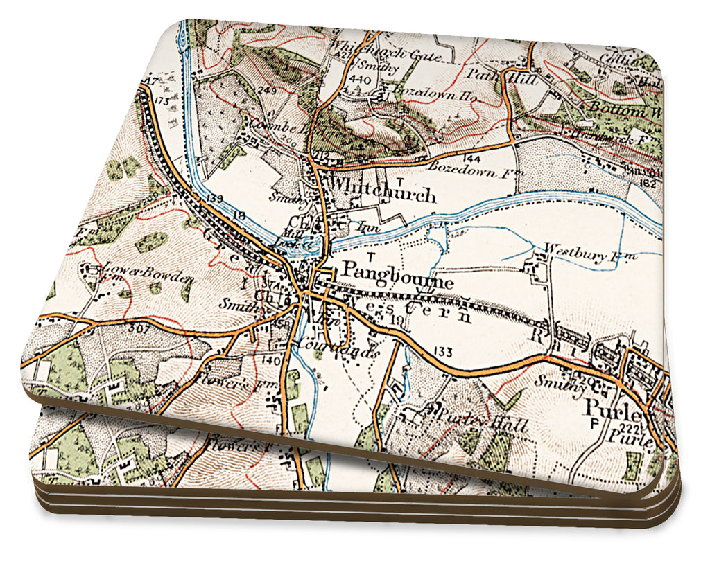 Custom coaster sets. Personalise your tableware with a Vintage Ordnance Survey One-inch Third Edition Map, this mapping was published between 1906 and 1913. Centre the map on a location of your choice in England or Wales.