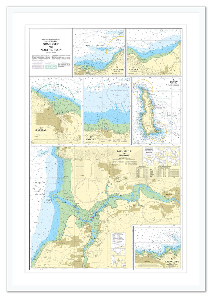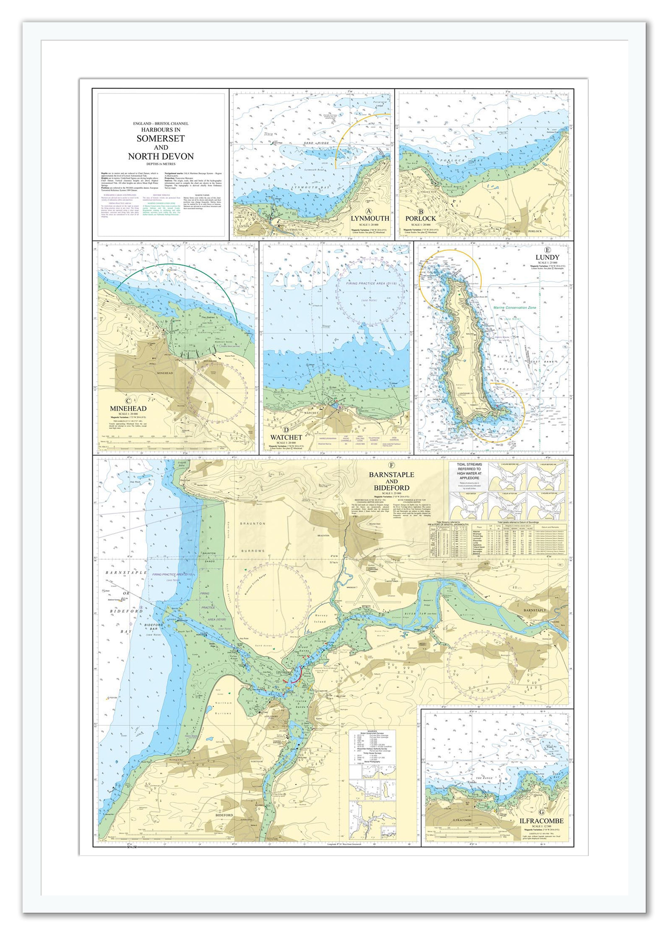 Framed Nautical Chart - Admiralty Chart 1160 - Harbours in Somerset and North Devon