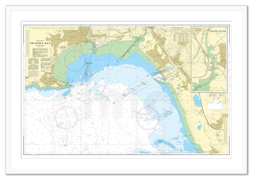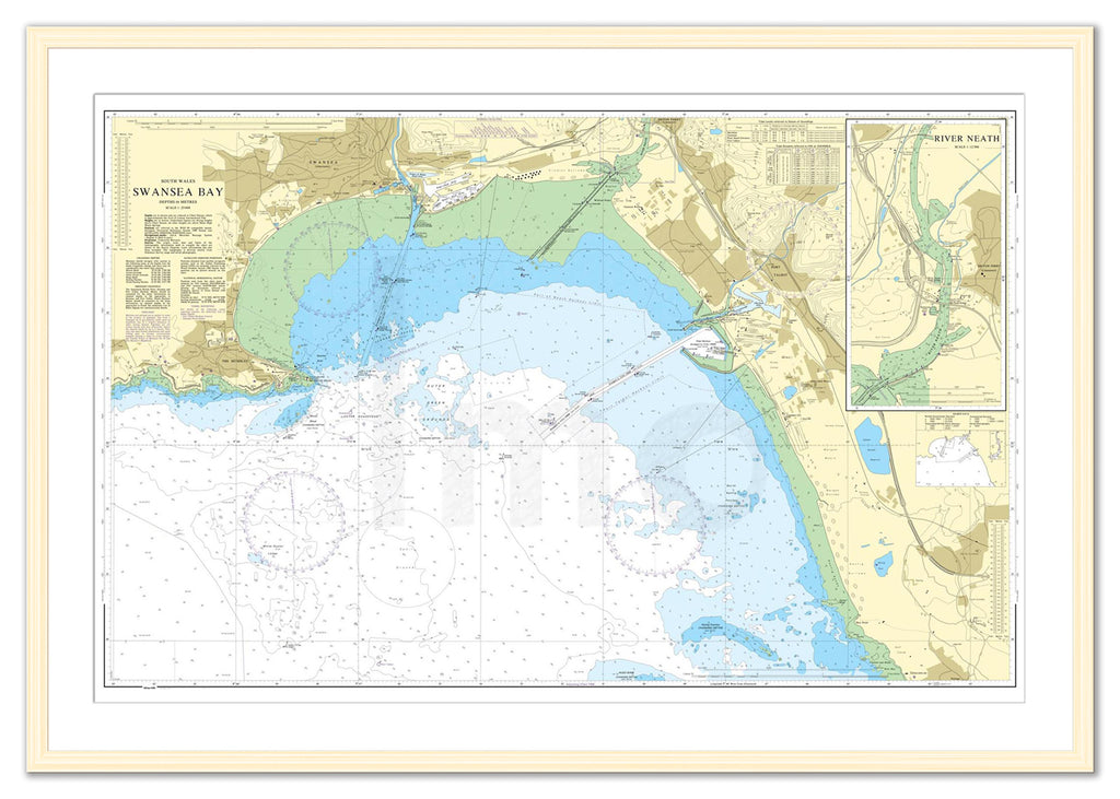 Framed Nautical Chart - Admiralty Chart 1161 - Swansea Bay