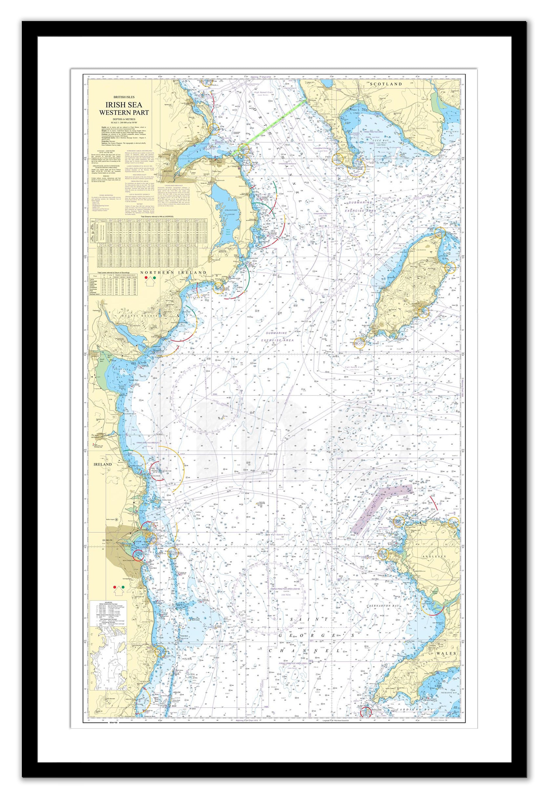 Framed Nautical Chart - Admiralty Chart 1411 - Irish Sea Western Part