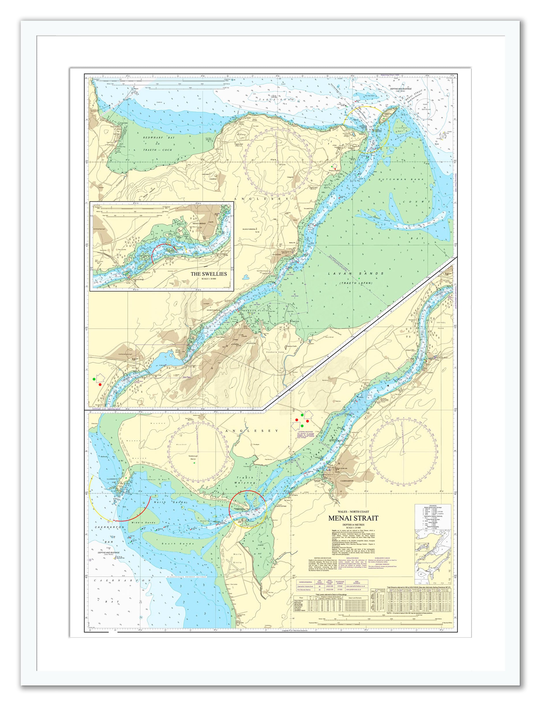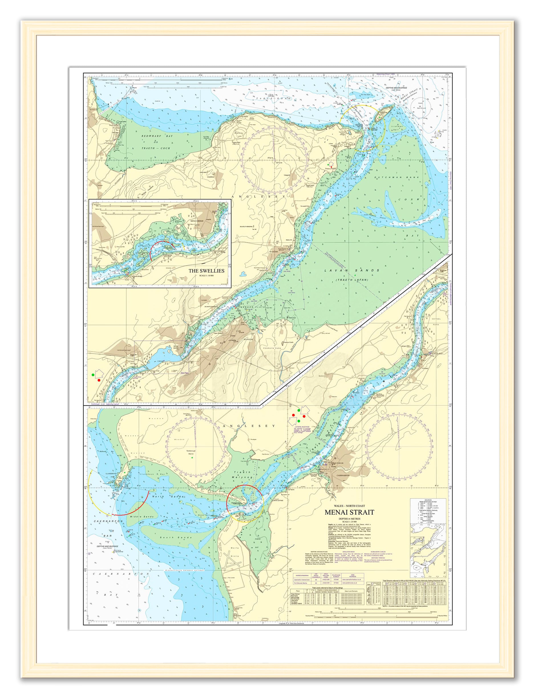 Framed Nautical Chart - Admiralty Chart 1464 - Menai Strait