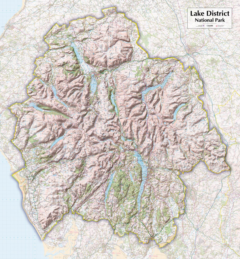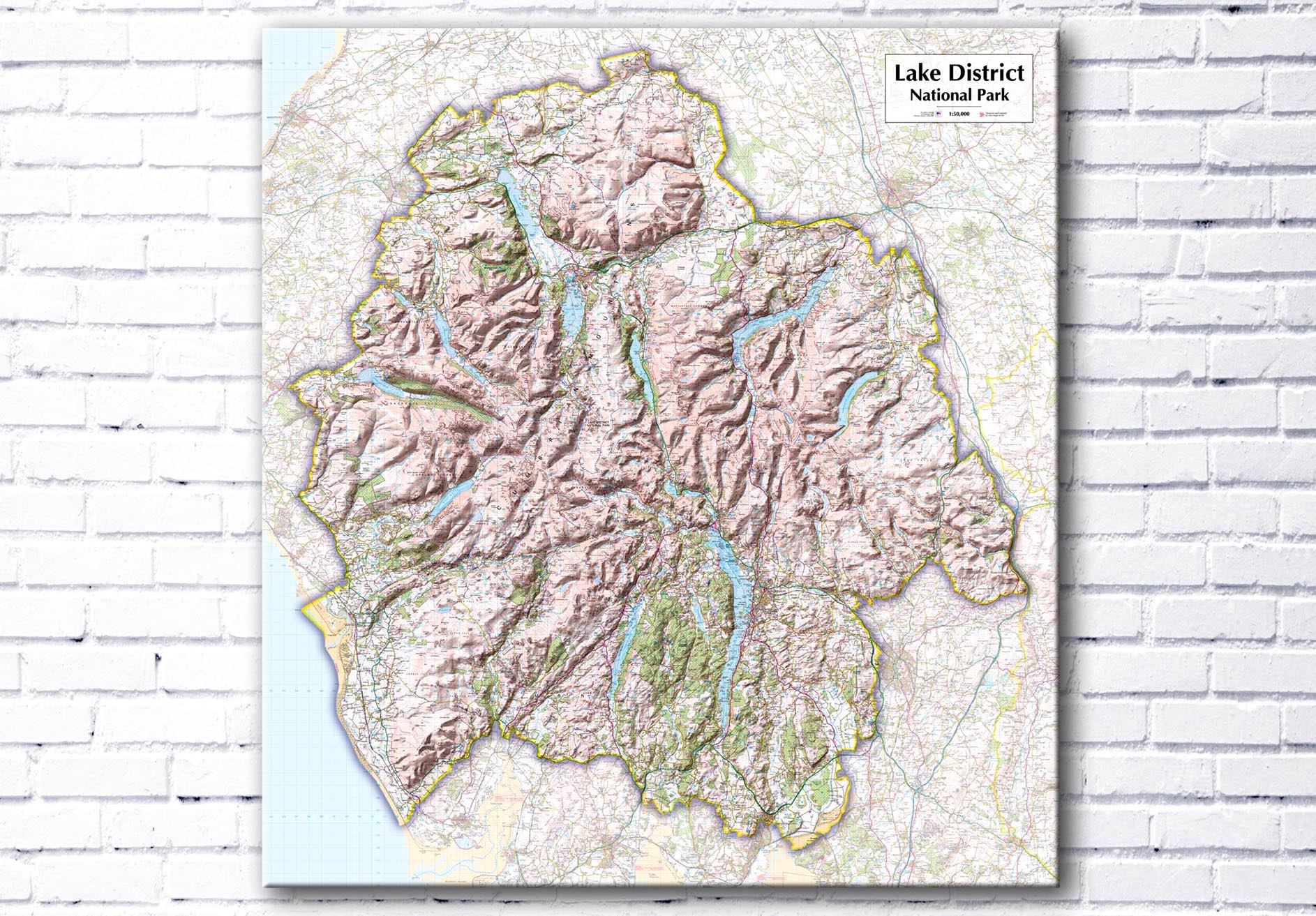 Ordnance Surveys Landranger map has been used to create this stunning canvas print with hillshading added and the outline of the park highlighted.