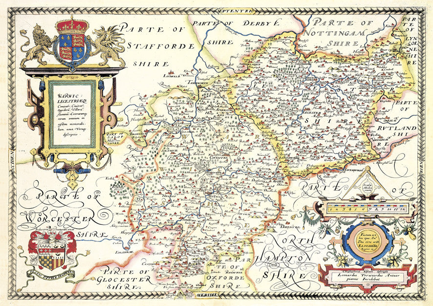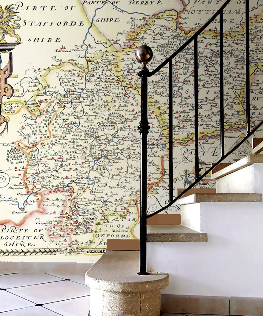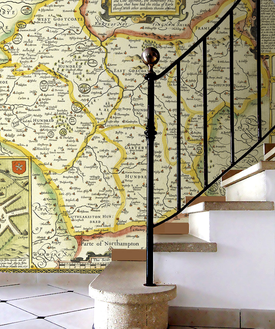 • A choice of two beautiful Vintage County maps of Leicestershire. Reproductions of the hand drawn maps by the cartographers John Speed in the 17th century or the earlier 16th century Christopher Saxton. Set within decorative borders and surrounded by intricate illustrations with the Speed map showing a plan of Leicester. These highly decorative antique wallpapers will transform any wall into an interior masterpiece.