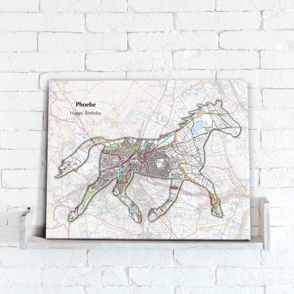 A 1:25,000 Explorer Map or Classic Streetmap (urban areas only) centred on any address and showcased in the shape of a horse. (Available for locations in England, Scotland & Wales). Make the gift even more special and add your own personal inscription or message.