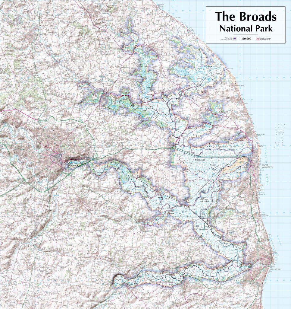 • The Broads National Park covers over 300 square kilometres of Norfolk and Suffolk. Comprising of 7 navigable rivers and 63 broads (lakes), the area was created when Medieval peat excavations were flooded by rising sea waters.