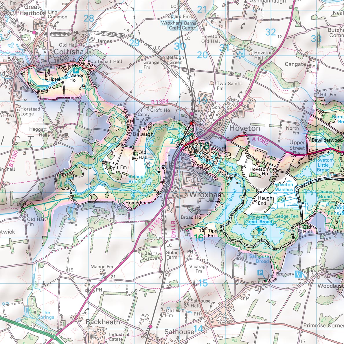 Ordnance Survey's 1:50,000 scale Landranger mapping has been used to create this stunning canvas print. The outline of the Park is highlighted while the area within the Park has been colour enhanced. Hillshading has been added but mainly occurs outside of the Park Boundary.