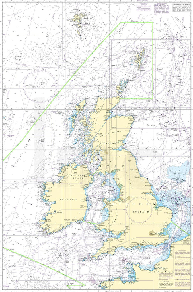 Create a unique feature wall with a United Kingdom and Ireland Nautical Chart. Choose from the available sizes shown above, or contact us for bespoke wall sizes.