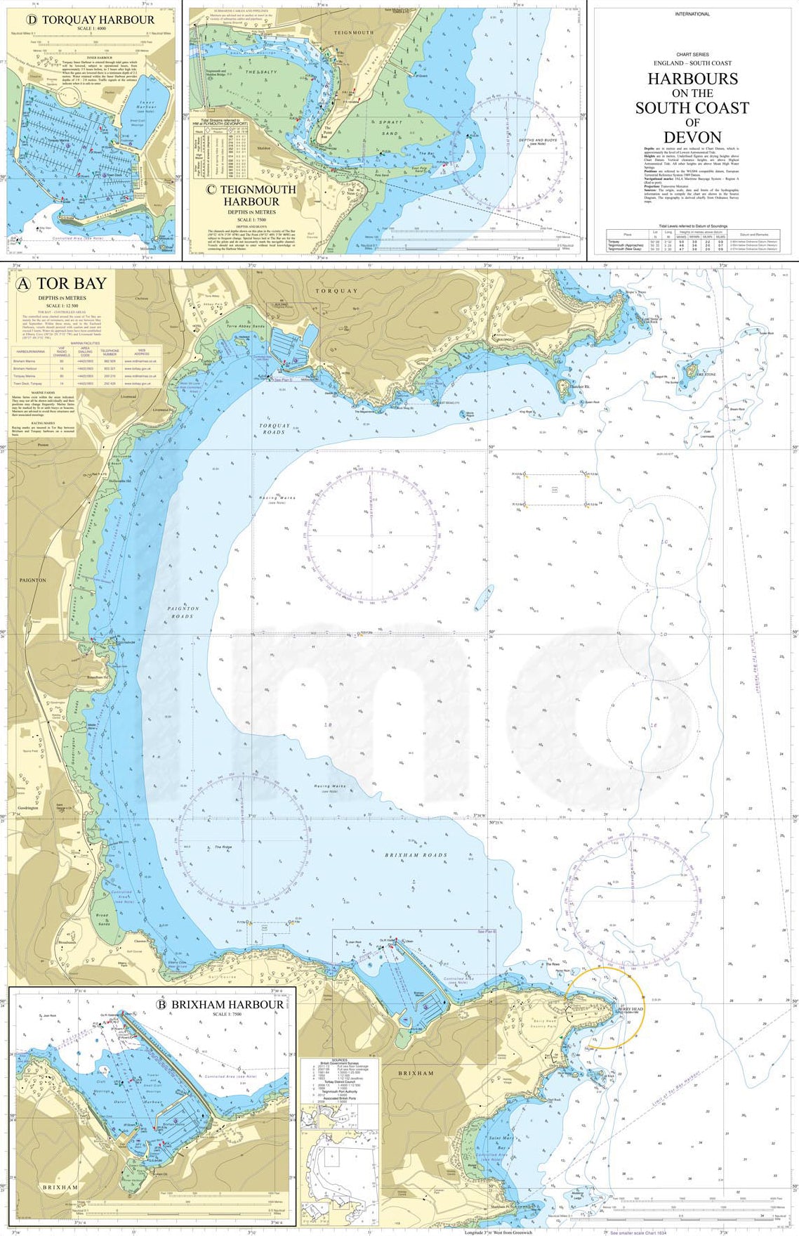 Nautical Chart Wallpaper - 26 Harbours on the South Coast of Devon