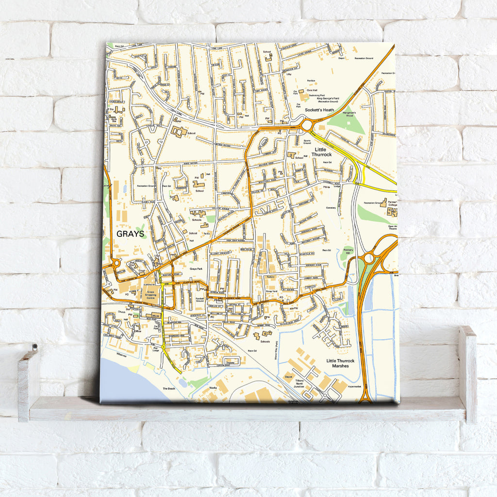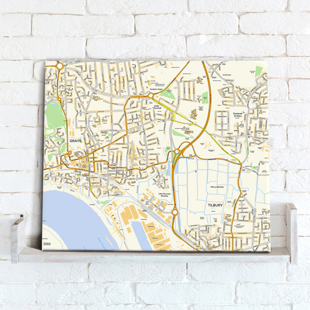 • An Ordnance Survey Street map on canvas centred on a postcode of your choice in England, Scotland and Wales.