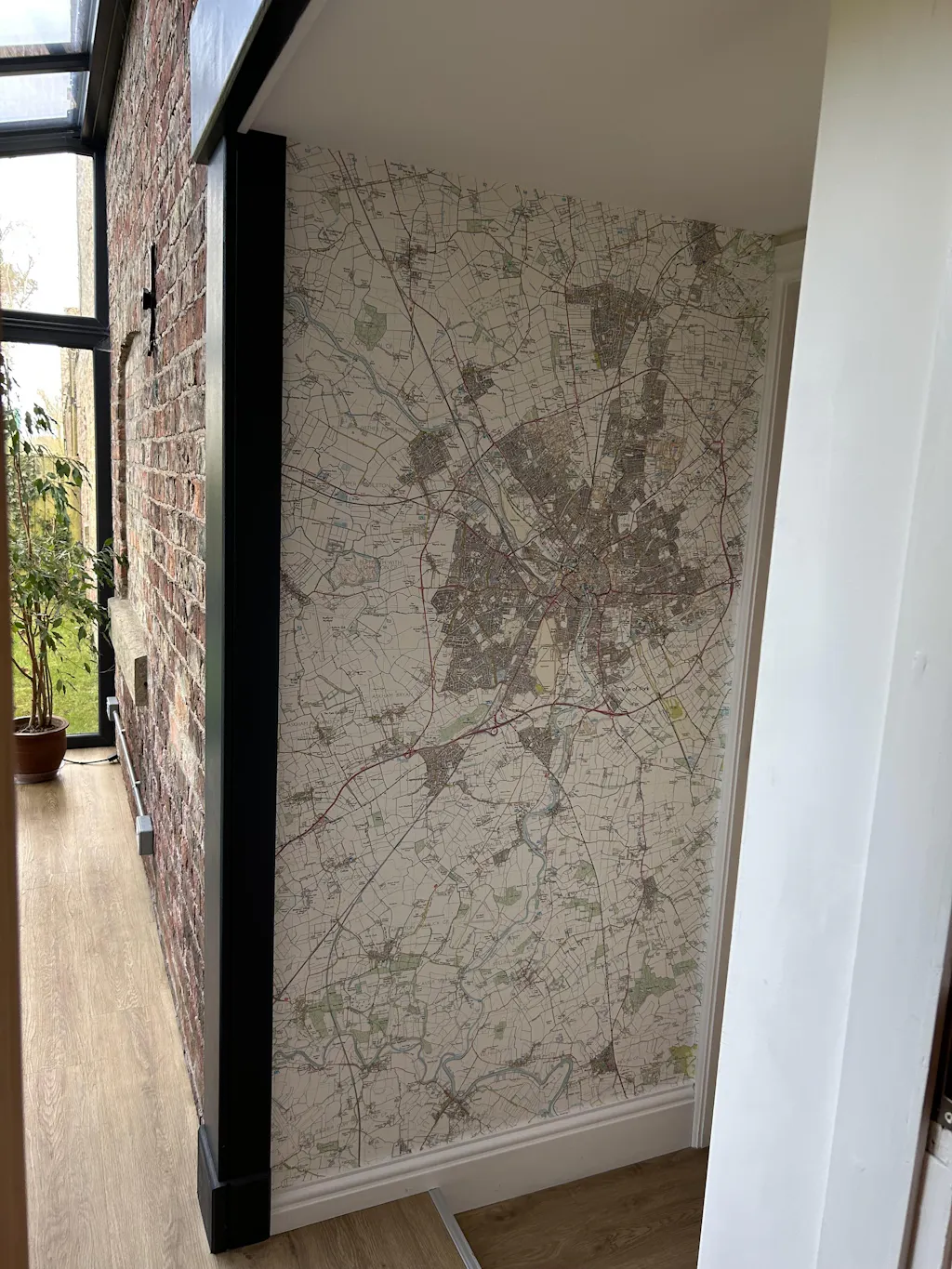 As part of our custom-made map service, we will provide you with a low-resolution proof file showing your whole wallpaper. We will also provide you with a high-resolution clip of the map centre. You will need to confirm you are happy to proceed before we print your wallpaper. These proof files will be supplied to you via email so please ensure you supply this when placing your order.