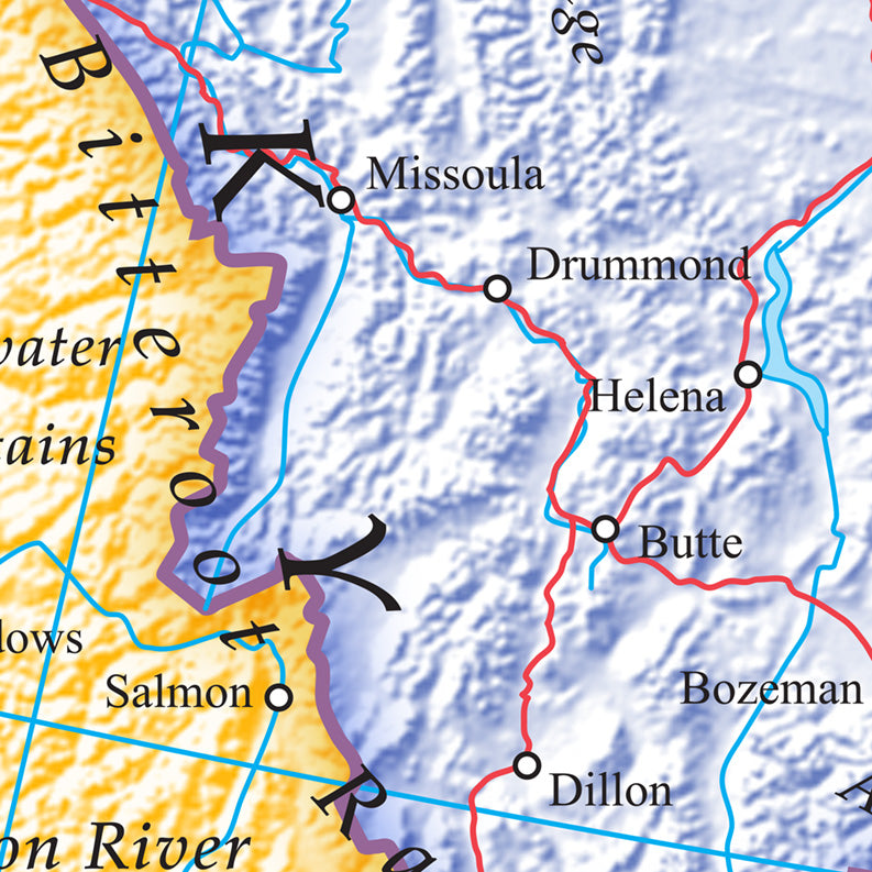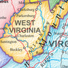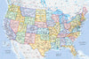A stunning political map of the United States with each state shown in a variety of traditional colours. Includes State names and boundaries along with interstates, railways, rivers and major towns and cities.
