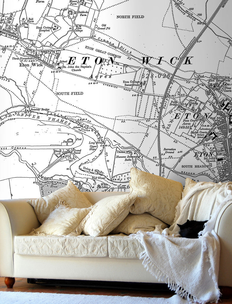 Create a unique feature wall with this Ordnance Survey County Series 1:10,000 map. Centre the map on a postcode of your choice in England, Scotland or Wales and we'll make a bespoke map wallpaper for your home or office.
