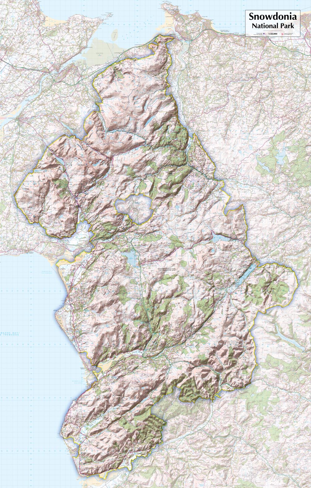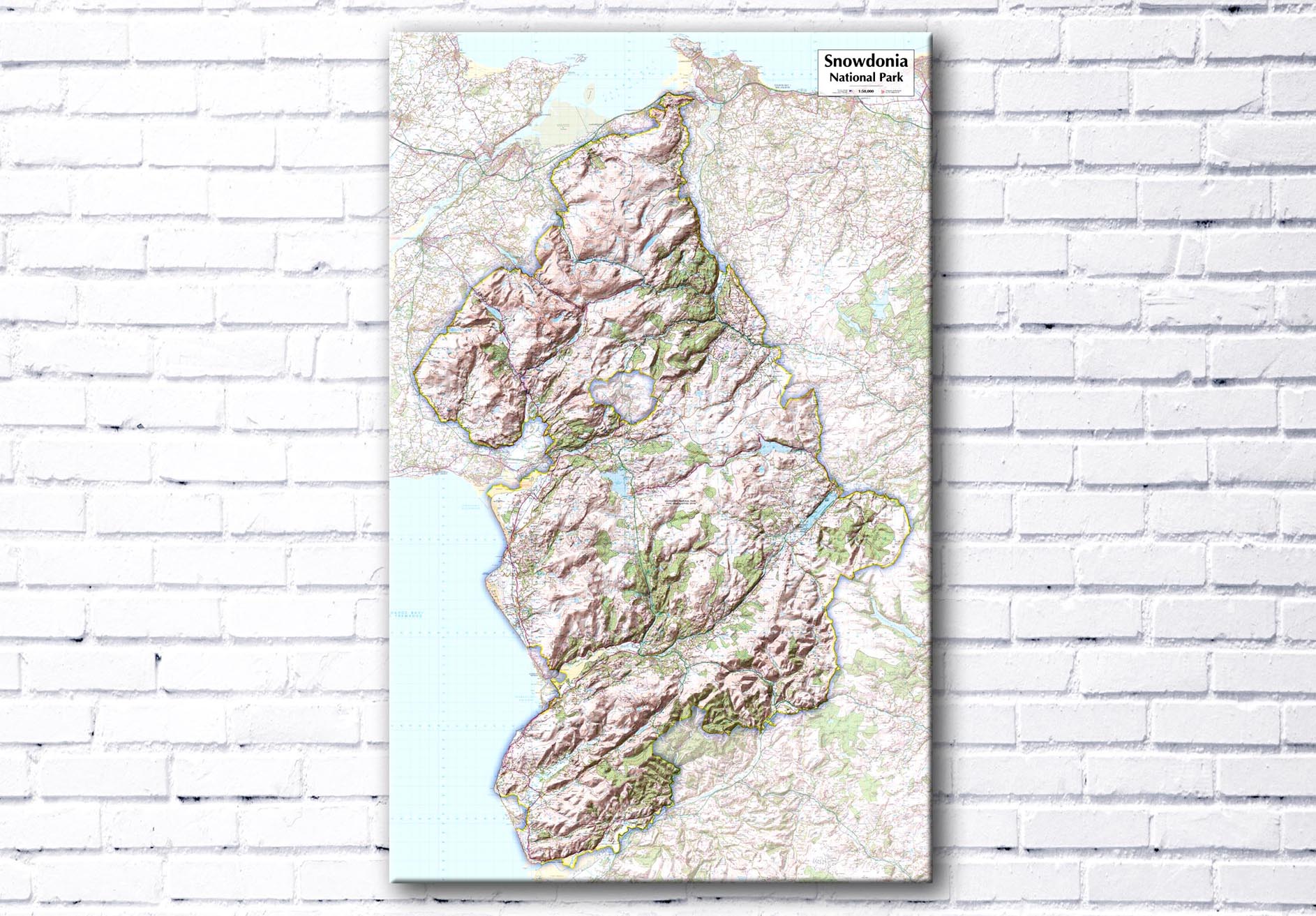 Ordnance Surveys landranger map has been used to create this stunning canvas print with hillshading added and the outline of the park highlighted.